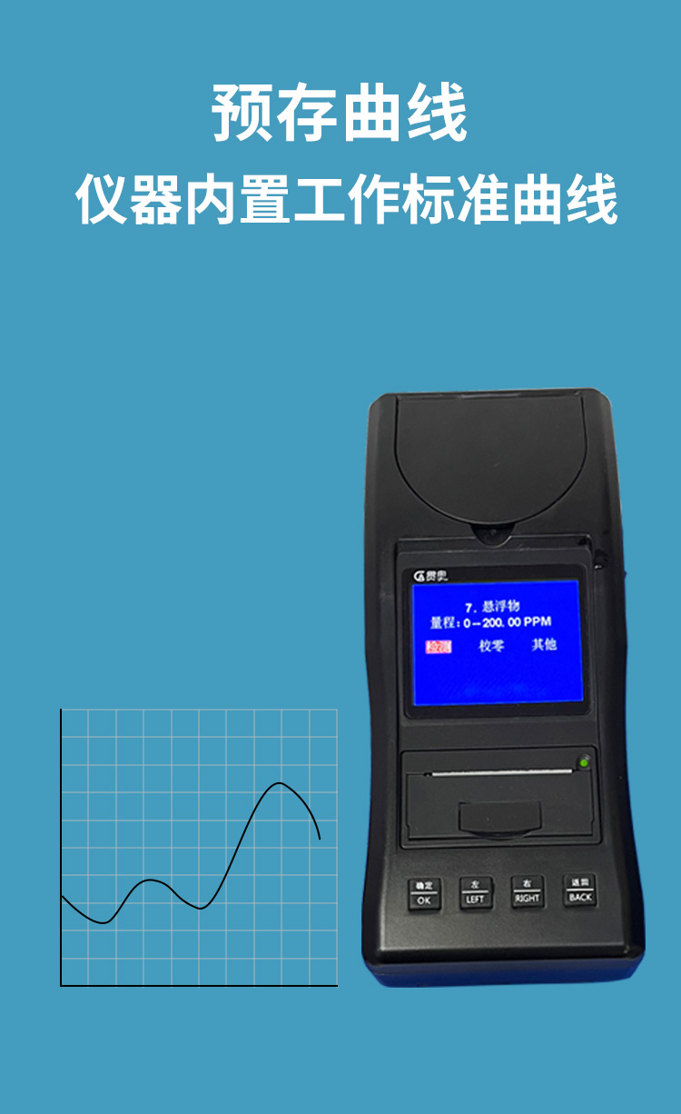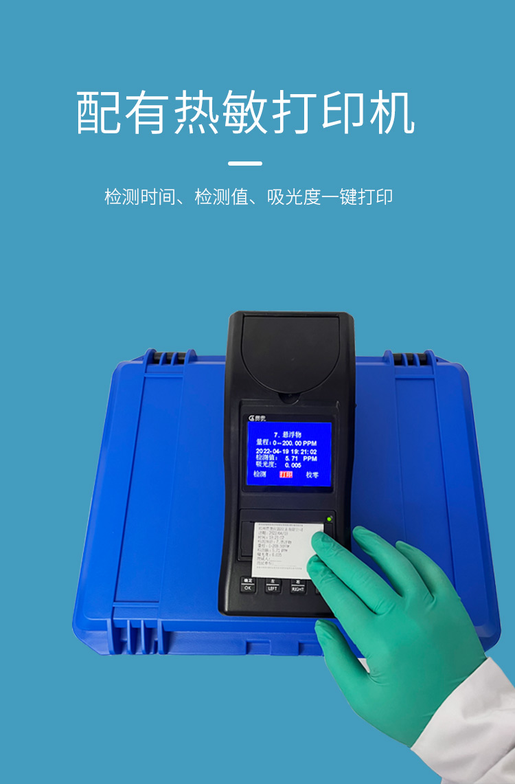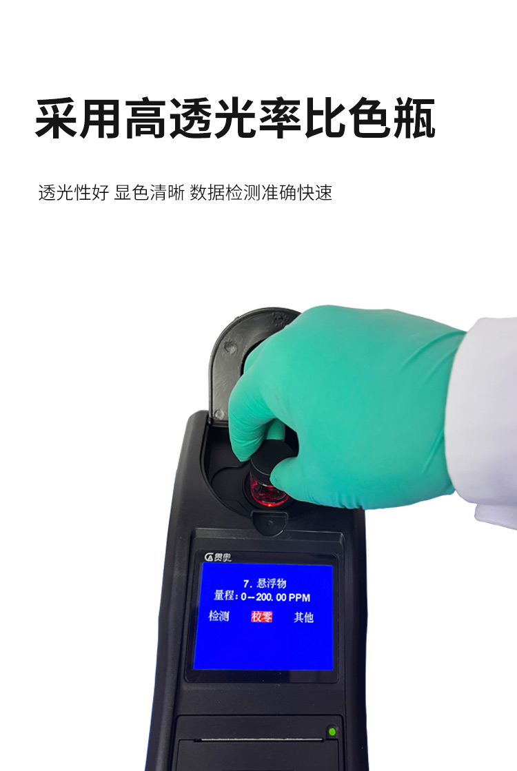 懸浮物水質檢測儀可快速準確測定地表水、地下水、城市污水及工業廢水中懸浮物指標,濃度直讀;可廣泛用于水廠、食品、化工、冶金、環保及制藥行業等部門。儀器是由單個的固定波長固定用途的分光光度計糅合而成的,采用分光光度法原理對各參數進行測量,在儀器中建立不同參數的濃度顯色程度與吸光度的線性曲線,儀器通過對顏色的辨別,得出被測水樣的濃度。本儀器采用全中文菜單操作簡單易懂使用方便快速測量準確度高